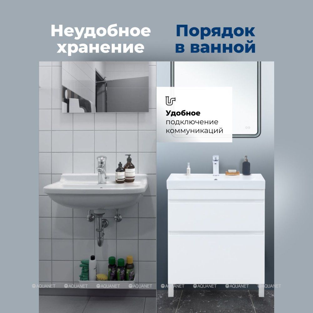 Тумба под раковину Aquanet Слим 346043 70 см белый сатин