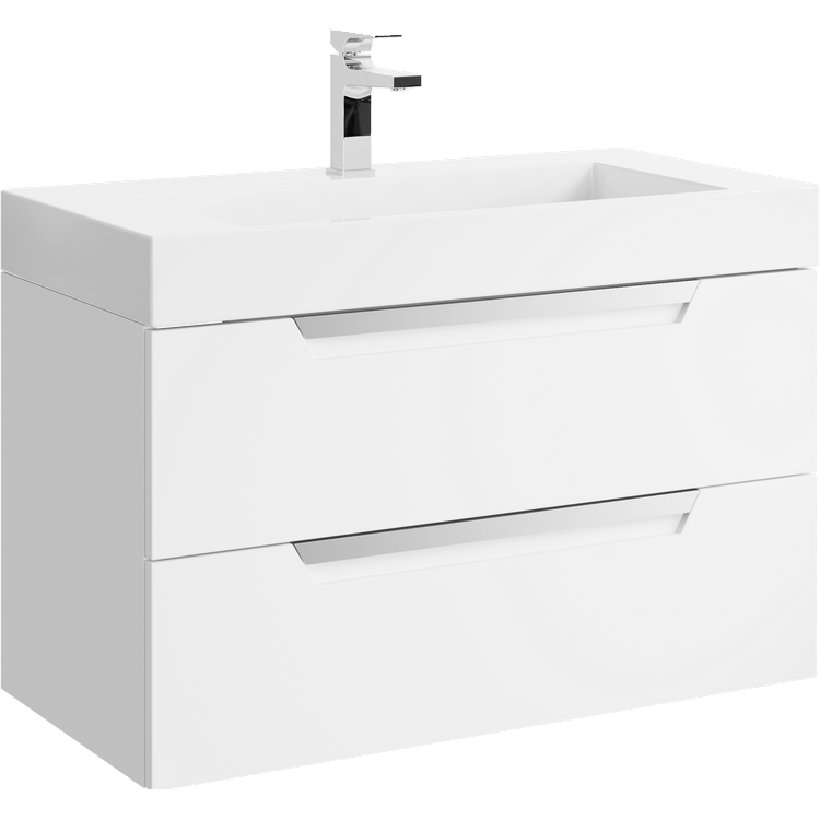 Подвесная тумба в белом матовом цвете с двумя ящиками под умывальник из литьевого мрамора.Коллекция мебели Cube – это строгие линии мебели для современных интерьеров, подчёркнутые искусным исполнением. Подвесные гарнитуры Cube поставляются в размерах 70 и 90 см. Доступные цвета мебели – белый и серый. Финальный слой лака – матовый.