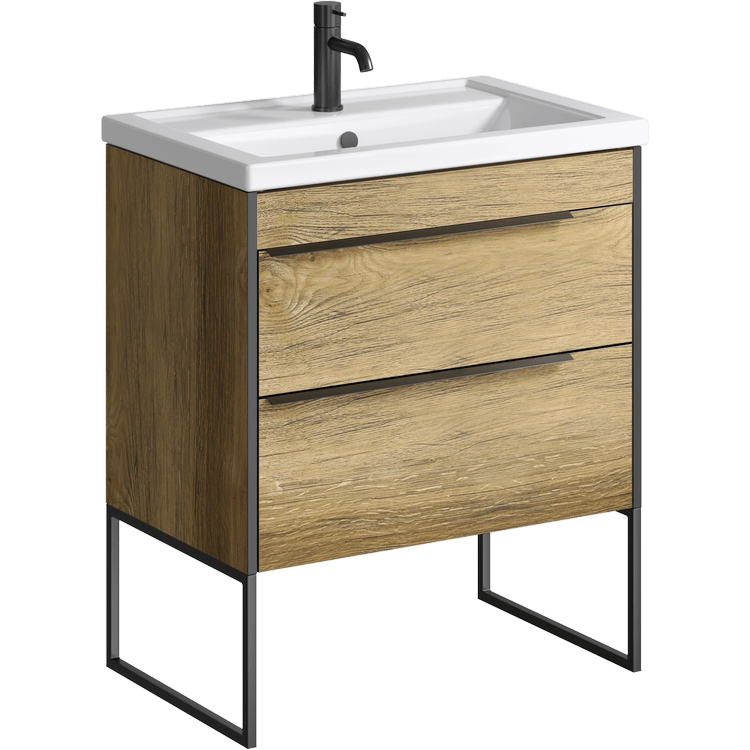 Тумба под раковину Aqwella Fargo FRG0107DB+FRGN440 70 смНапольная тумба в цвете дуб балтийский с двумя ящиками с умывальником
