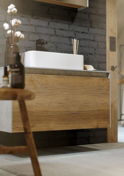 Mobi корпус тумбы под умывальник подвесной, цвет бетон светлый, 100 см без фасадов