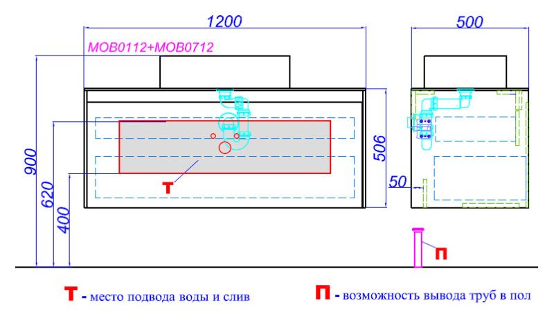 Mobi корпус тумбы под умывальник подвесной, цвет белый, 120 см без фасадов