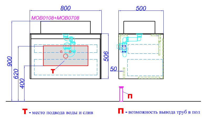 Корпус тумбы под раковину Aqwella Mobi 80 MOB0108W купить