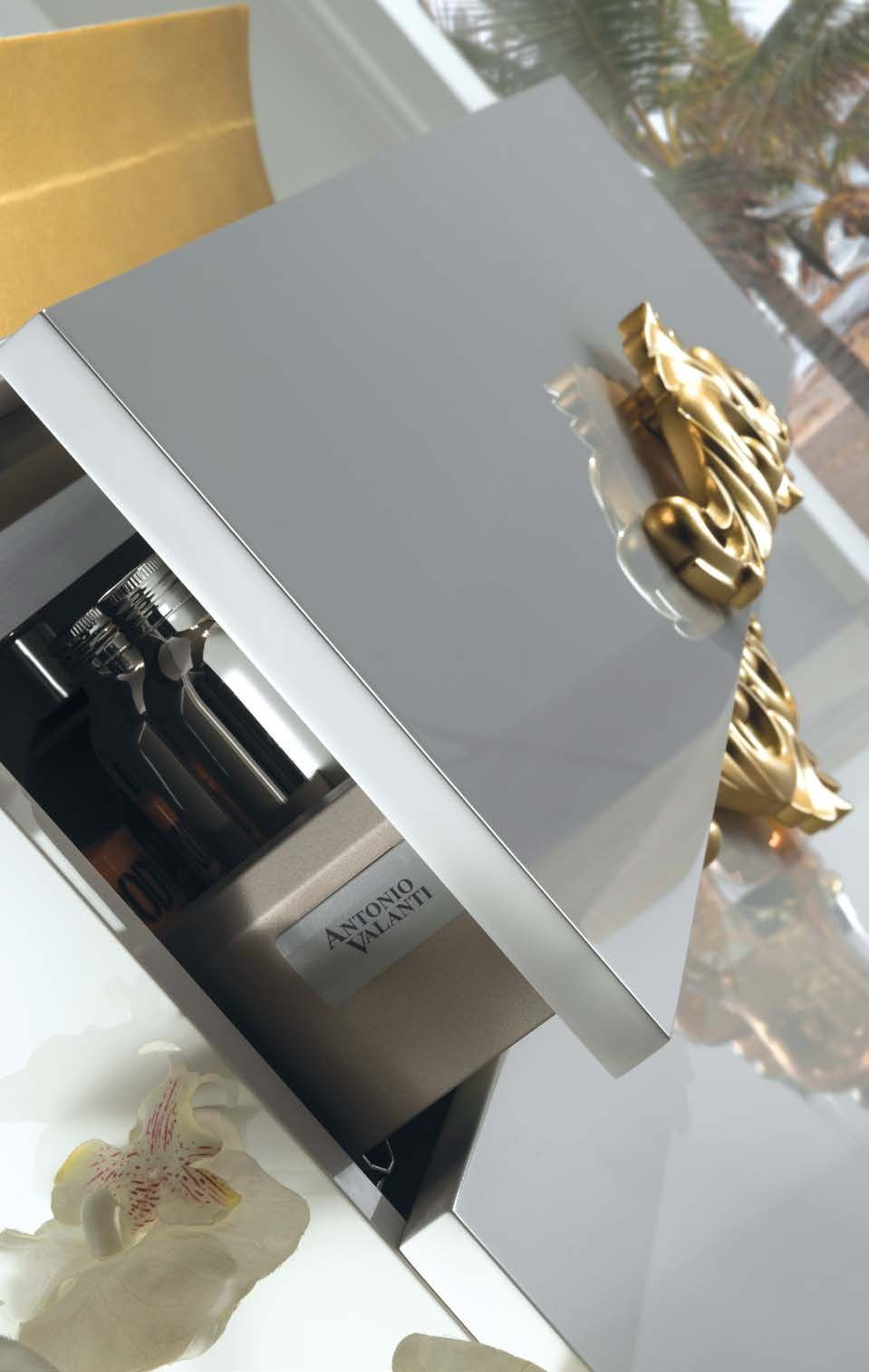 - Внутренняя поверхность выдвижных ящиков отделана вручную эко-кожей с маркировкой Armadi Art и строчкой ручной работы