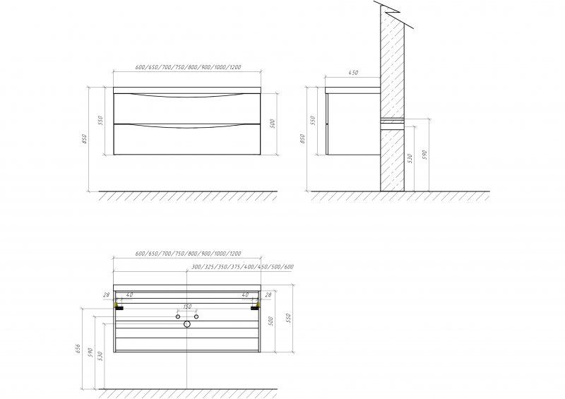 Дополнительная информация: база оснащена доводчиками, ручки скрыты в плоскости фасада, раковина сифоном не комплектуется