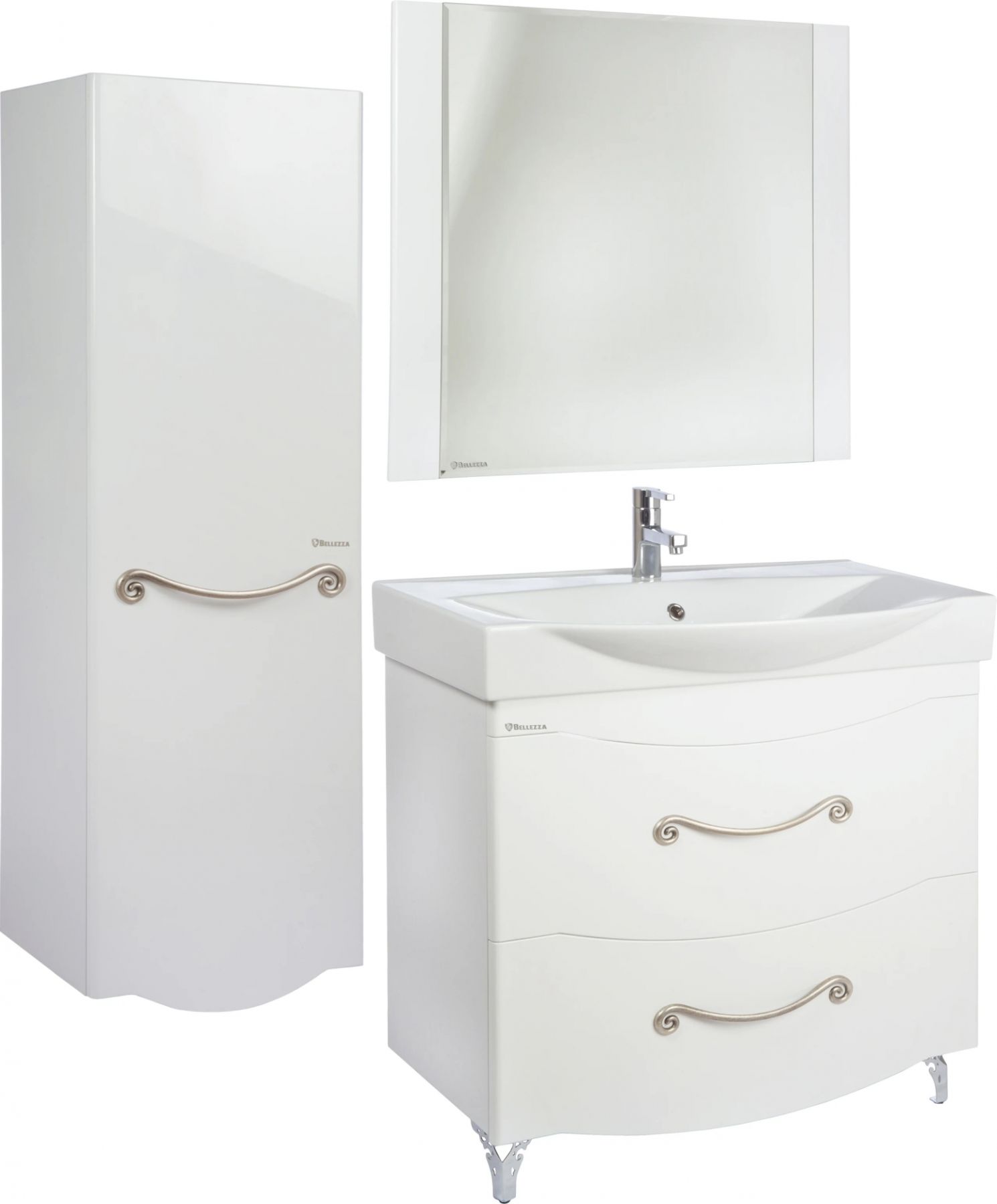 Тумба для комплекта Bellezza прекрасно впишется в дизайн любой ванной комнаты, будь то компактная ванная в многоэтажном доме или большой санузел в загородном коттедже. Напольный способ установки производится непосредственно на пол, при этом конструкция максимально устойчива при серьезных физических нагрузках.