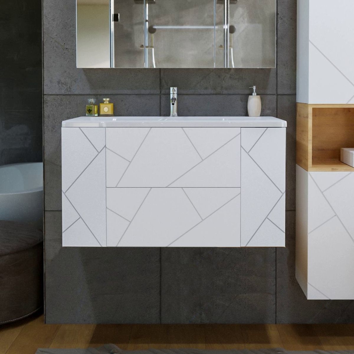 С помощью подвесной тумбы ванная комната становится не только более удобной, но и эстетически привлекательной, создавая атмосферу уюта и роскоши.