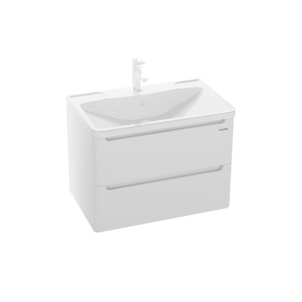 Тумба подвесная Адель 70 см - в белом глянцевом цвете, интегрированные ручки добавляют современный дизайн и строгий стиль.