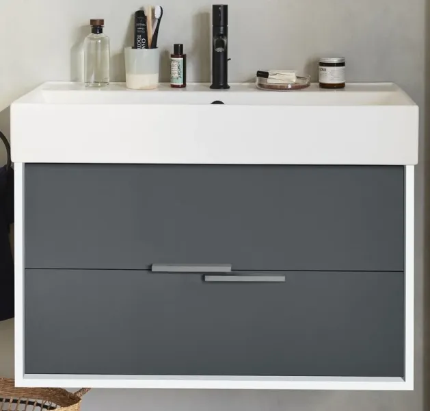 Тумба под раковину Jacob Delafon Vivienne EB1668-J5-J54, 100 см, корпус белый блестящий, фасад серый матовый, ручки хром