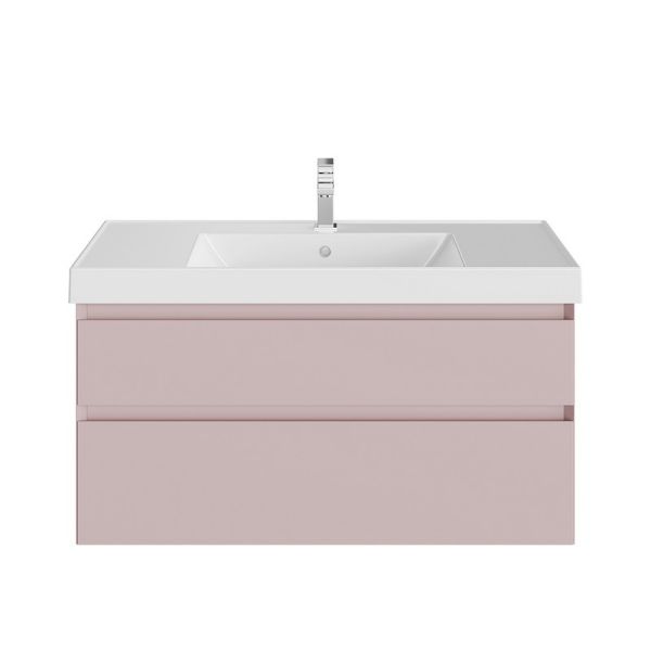 Подвесная тумба в цвете мальва (розовая) матовая с двумя выдвижными ящиками. Ящики закрываются плавно и бесшумно. Внутренняя отделка ящиков напоминает фактуру ткани. Сочетается с раковиной CUBO шириной 100 см Изделия из ДСП, МДФ, а также изделия из металла требуют правильного ухода и эксплуатации. При установке и дальнейшей эксплуатации изделий, следует обратить внимание на их расположение в ванной комнате: они должны быть установлены вдали от источников тепла; температура воздуха в помещении должна быть в пределах +2 — +25 °С, а влажность воздуха не должна превышать 45%-70%. Во избежание появления пятен, отслоения облицовки и коррозии металла, не допускать скопления воды и жидкостей на поверхностях изделий и как можно скорее протереть сухой мягкой тканью участок, контактирующий с жидкостью. Соблюдайте правила ухода за изделиями из металла и они прослужат Вам очень долго.
