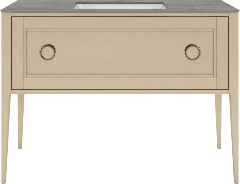 Напольная тумба с одним выдвижным ящиком выполнена из массива ясеня с отделкой «открытая пора». Вместительный ящик с плавным закрыванием украшен двумя крупными ручками. Сочетается с керамическими столешницами PLAZA Classic шириной 120 см. Подходит для установки раковин с типом монтажа «встраиваемая снизу».