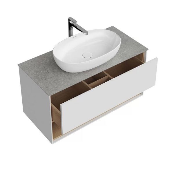 Подвесная тумба в белом глянцевом цвете с одним выдвижным ящиком и открытой полкой. Вместительный ящик оснащен системой открывания Push-to-Open. Сочетается со столешницами PLAZA Modern и накладными раковинами серии PLAZA. Изделия из ДСП, МДФ, а также изделия из металла требуют правильного ухода и эксплуатации. При установке и дальнейшей эксплуатации изделий, следует обратить внимание на их расположение в ванной комнате: они должны быть установлены вдали от источников тепла; температура воздуха в помещении должна быть в пределах +2 — +25 °С, а влажность воздуха не должна превышать 45%-70%. Во избежание появления пятен, отслоения облицовки и коррозии металла, не допускать скопления воды и жидкостей на поверхностях изделий и как можно скорее протереть сухой мягкой тканью участок, контактирующий с жидкостью. Соблюдайте правила ухода за изделиями из металла и они прослужат Вам очень долго.