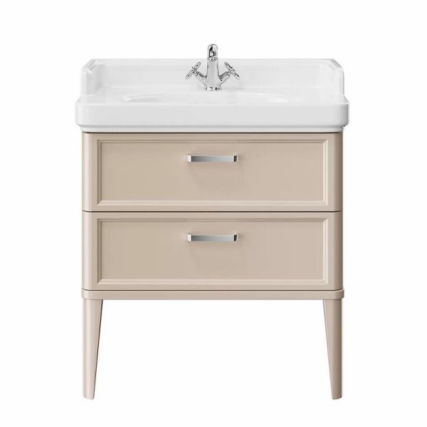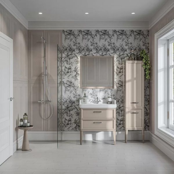 В варианте с двумя ящиками у тумбы POMPEI появляются две высокие ножки. Фасад мебели выполнен со скруглениями по двум сторонам. В мебели использована качественная амортизирующая фурнитура. Вместительный ящик тумбы внутри сделан с отделкой «лён антрацит», характерной для большинства новых моделей мебели KERAMA MARAZZI. Тёплый цвет «камео бежевый» хорошо сочетается с широким спектром стилей, поэтому такую мебель можно использовать как в современных, так и в традиционных интерьерах.