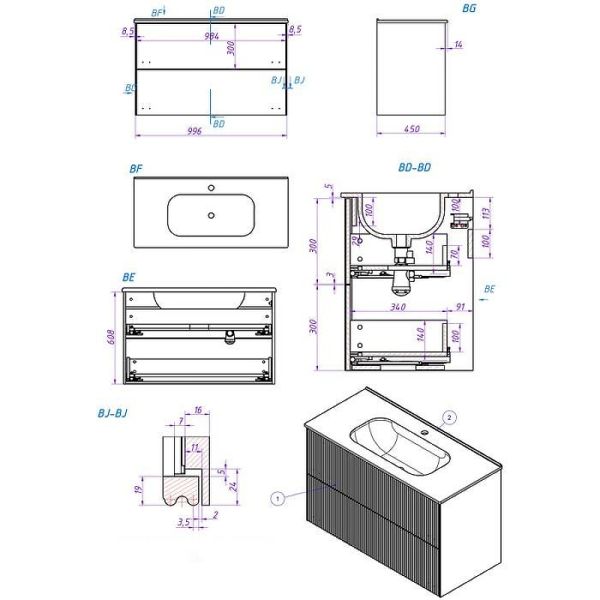 Габариты корпуса тумбы (ШхВхГ): 996х608х450 мм.