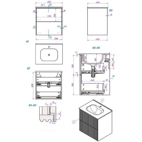 Габариты корпуса тумбы (ШхВхГ): 590х608х450 мм.