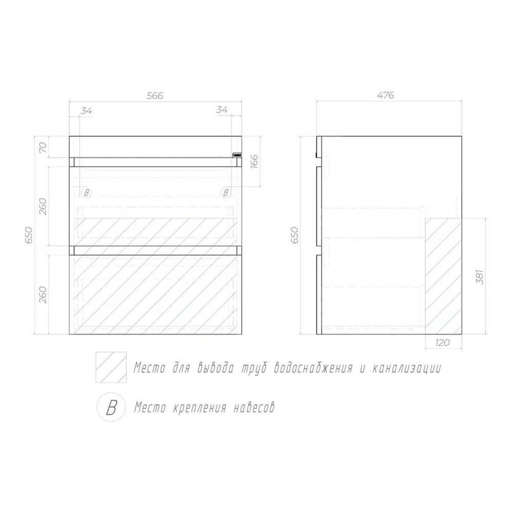 Тумба под раковину подвесная VIGO Urban 043, 60 см. Гарантийный срок 2 года. Монтаж: подвесной. Доводчик: да. Нажимной механизм: нет.