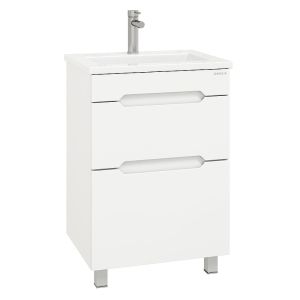 Напольная тумба для ванной комнаты Onika Айленд 50 сочетает в себе стильный минималистичный дизайн, белую глянцевую поверхность и высочайшее качество исполнения.