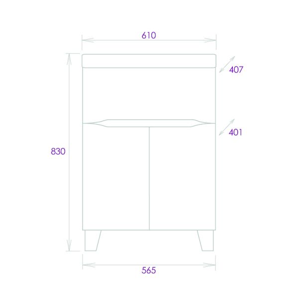 Размеры тумбы без учета раковины и ножек 57x40x68 cм.