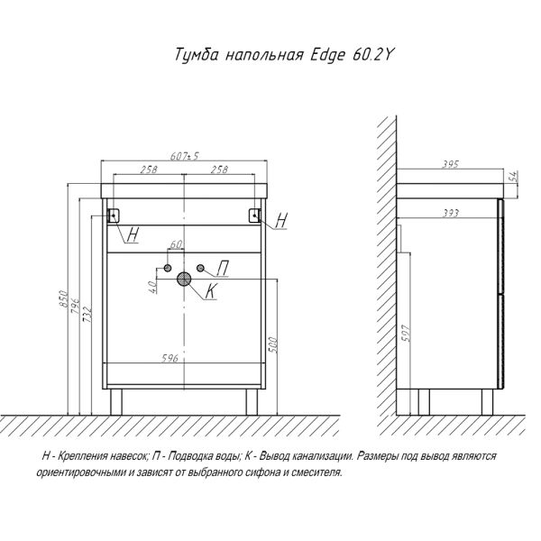 Тумба под раковину напольная Velvex Edge tn.EDG.9696.60.2Y графит, 60 см