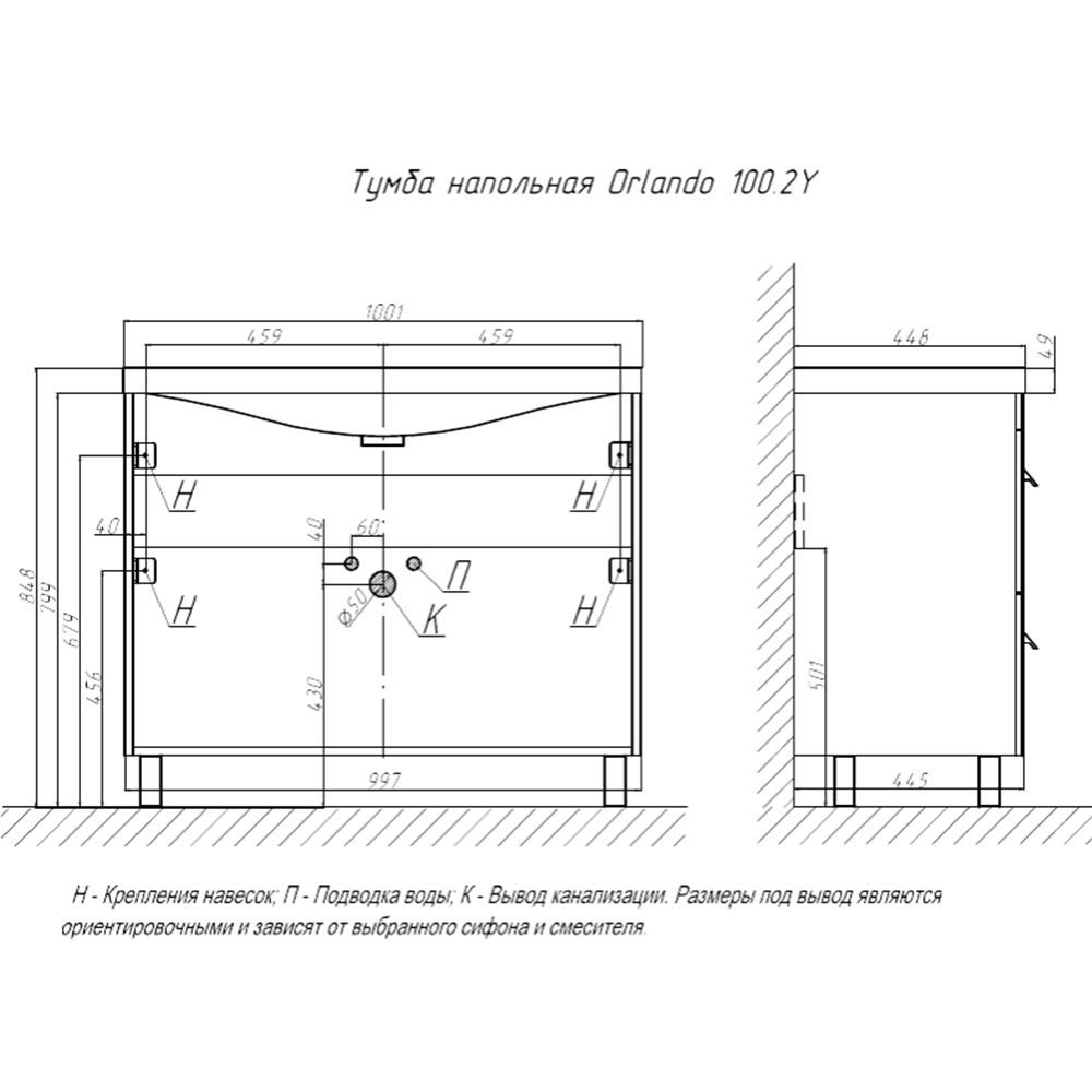 Тумба под раковину напольная Velvex Orlando tn.ORL.CLA.100.2Y белый матовый, 100 см купить