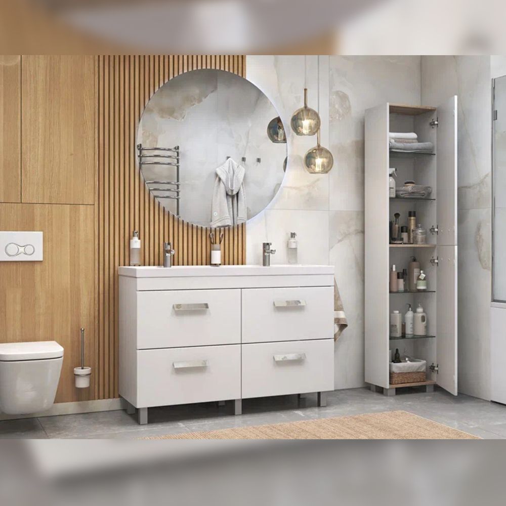 Тумба под раковину напольная Velvex Orlando tn.ORL.CLA.120.4Y белый матовый, 120 см: 4 выдвижных ящика с механизмом плавного закрывания.