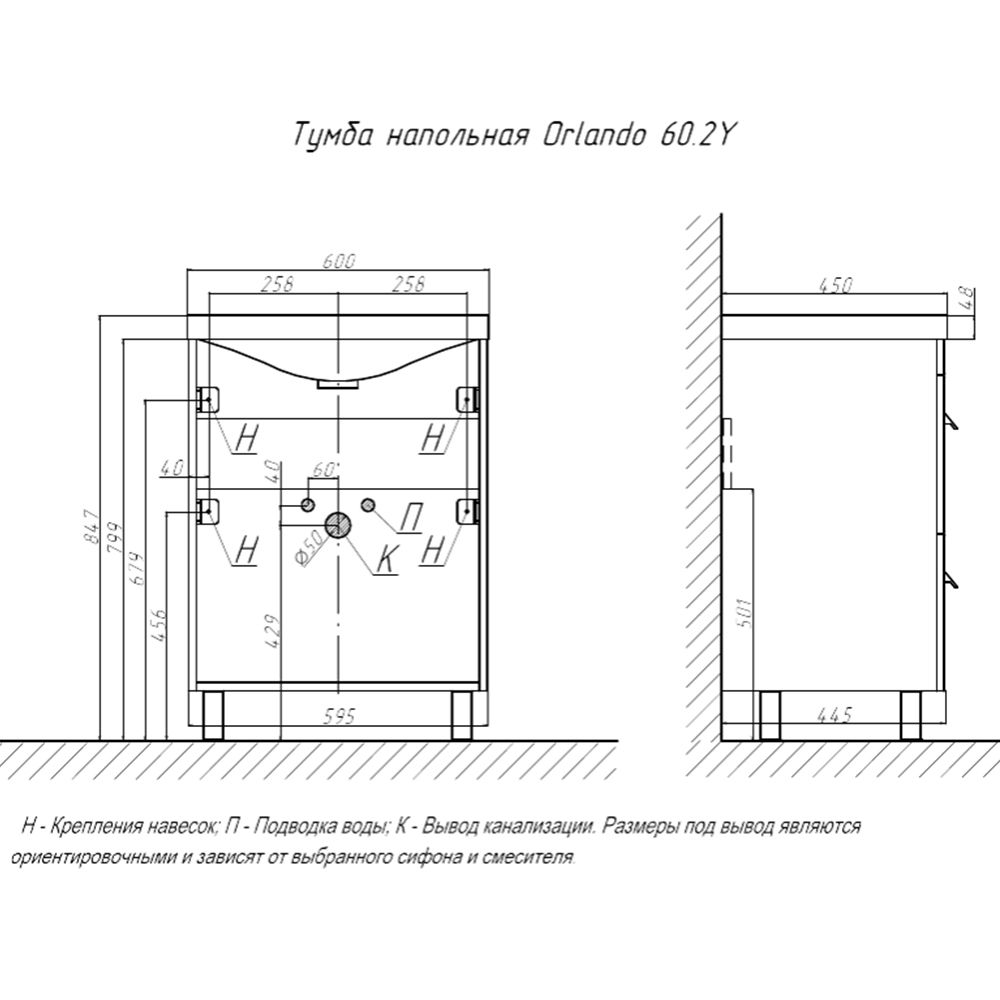Тумба под раковину напольная Velvex Orlando tn.ORL.CLA.60.2Y белый матовый, 60 см