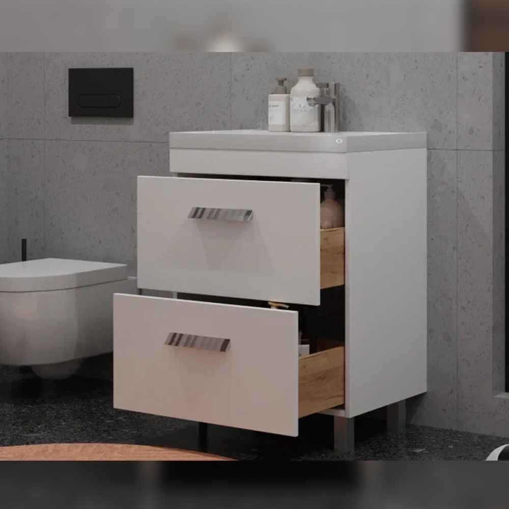 Тумба под раковину напольная Velvex Orlando tn.ORL.CLA.60.2Y белый матовый, 60 см: 2 выдвижных ящика с механизмом плавного закрывания.