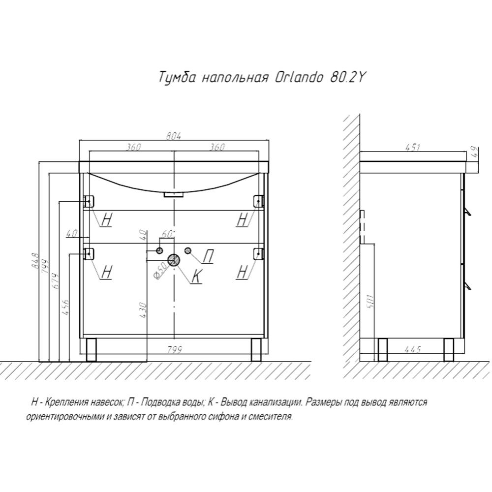 Тумба под раковину напольная Velvex Orlando tn.ORL.CLA.80.2Y графит, 80 см купить