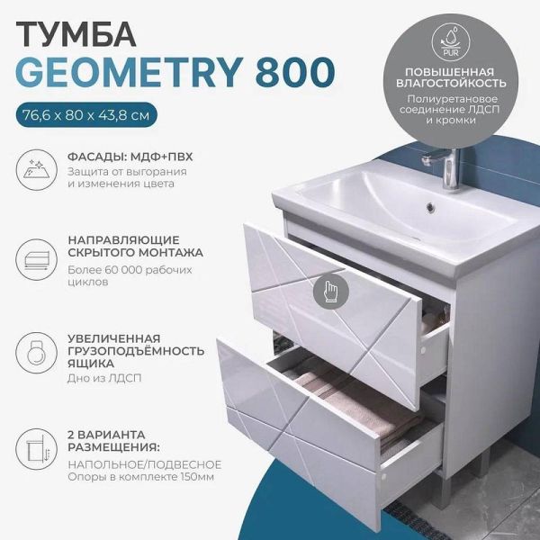 Тумба под раковину напольная VIGO Geometry 025, 80 см. Гарантийный срок 2 года. Монтаж: напольный. Доводчик: нет. Нажимной механизм: да.