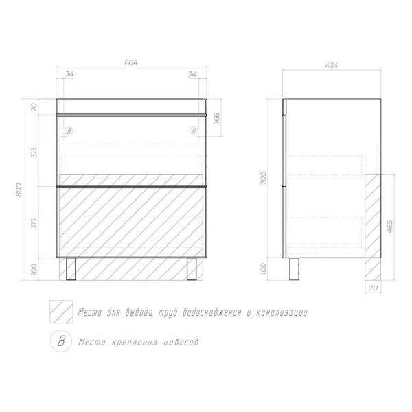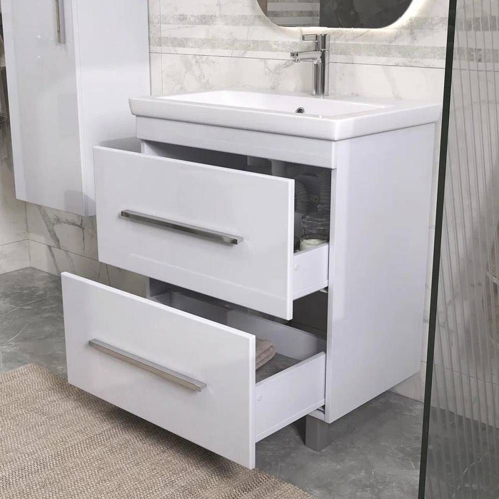 Тумба под раковину напольная VIGO Land 020, 70 см. Гарантийный срок 2 года. Монтаж: напольный. Доводчик: да. Нажимной механизм: нет.