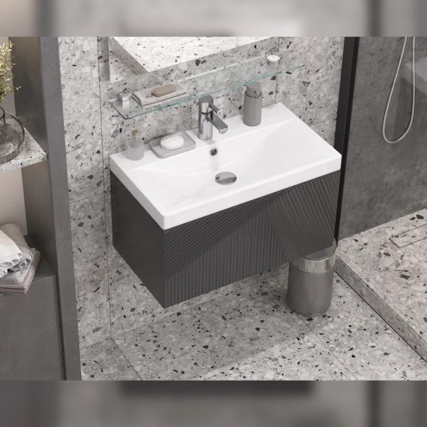 Тумба под раковину подвесная Velvex Edge tp.EDG.9696.70.1Y графит, 70 см: 1 выдвижной ящик с механизмом открывания push-to-open.