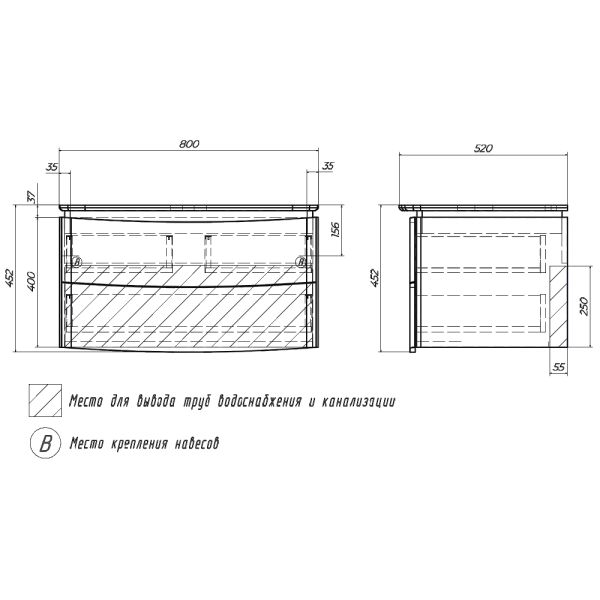 Тумба под раковину подвесная Velvex Luna tp.LUN.80.2Y, 80 см купить
