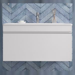 Тумба под раковину подвесная Velvex Pulsus tp.PUL.PUL.100.1Y белый глянец, 100 см: 1 выдвижной ящик.