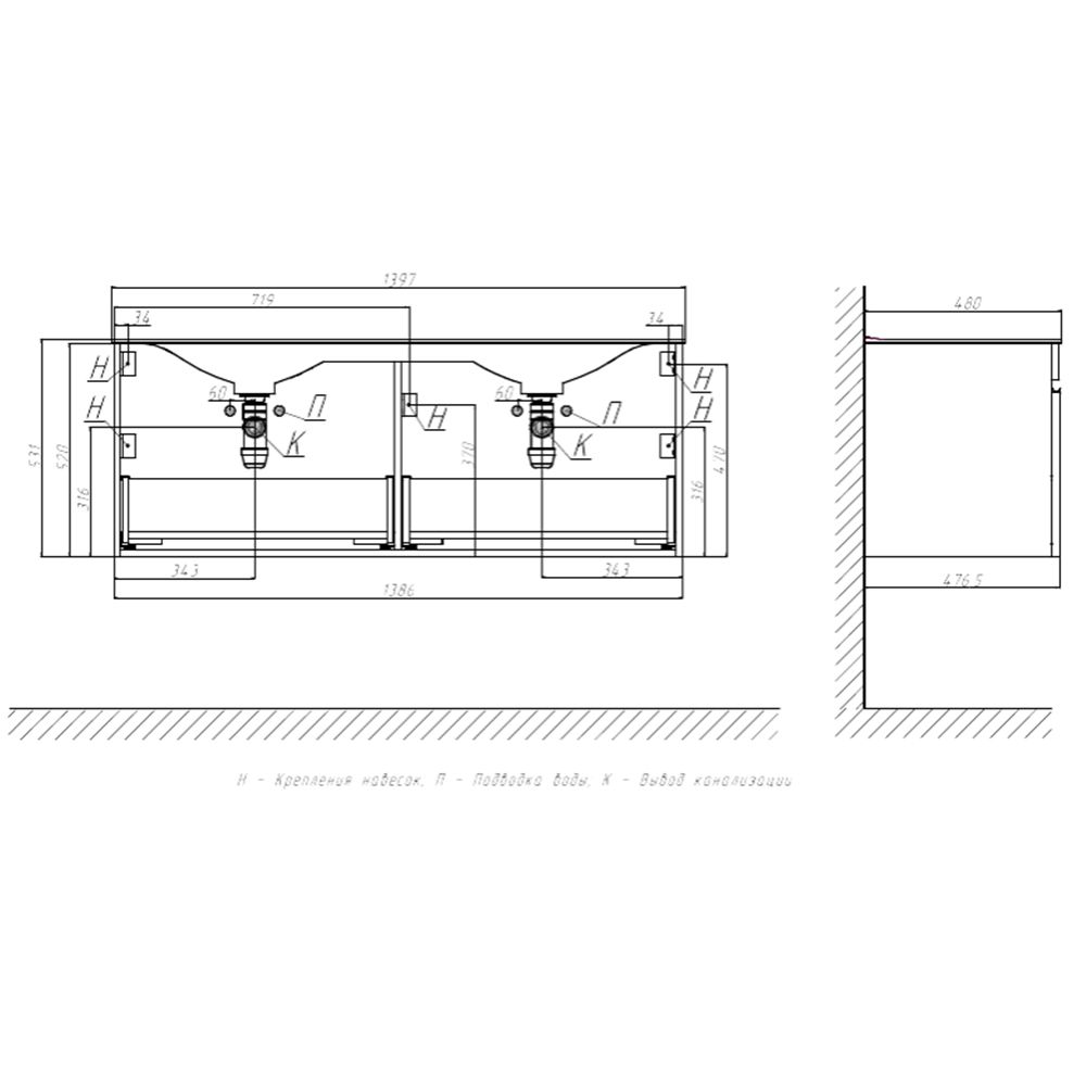 Тумба под раковину подвесная Velvex Pulsus tp.PUL.PUL.140.2Y белый глянец, 140 см купить