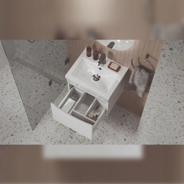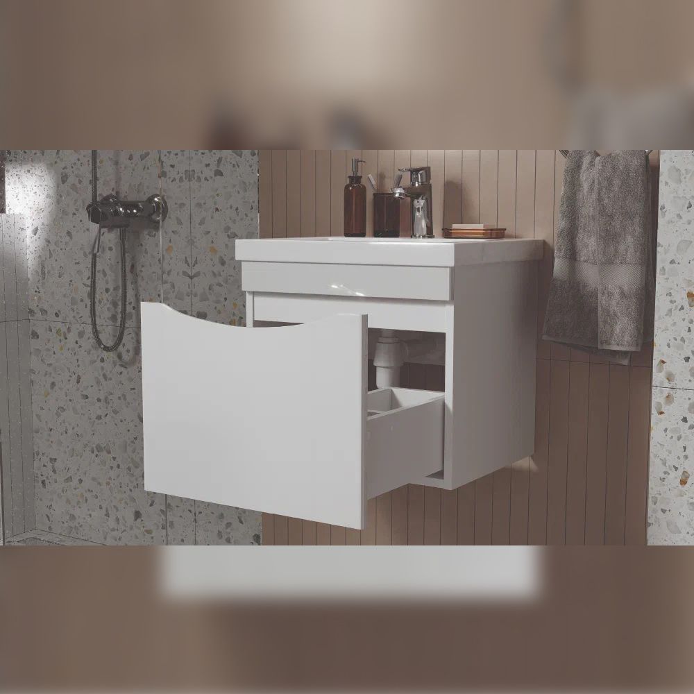 Тумба под раковину подвесная Velvex Vizo tp.VIZ.COM.50.1Y, 50 см: 2 выдвижной ящик.