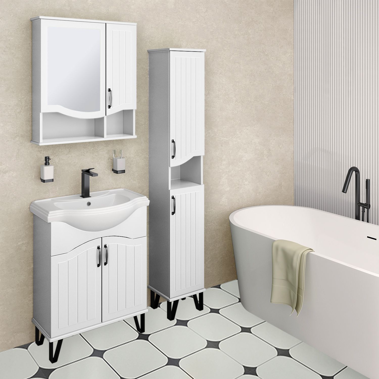 Тумба с раковиной RUNO МАРСЕЛЬ - оригинальное и яркое решение для оснащения ванной комнаты. Тумба под раковину МАРСЕЛЬ (напольная) выполнена в модном цвете с вертикальной "карандашной" фрезеровкой. Тумба в ванную имеет две распашные дверцы и одну внутреннюю полку. В комплекте идут петли со встроенным доводчиком, 2 черные ручки, 4 ножки. Тумба комплектуется керамической раковиной "Классик" (660*420 мм). Раковина имеет глубину 20 см. Мебель для ванной RUNO - красота и практичность в мелочах!