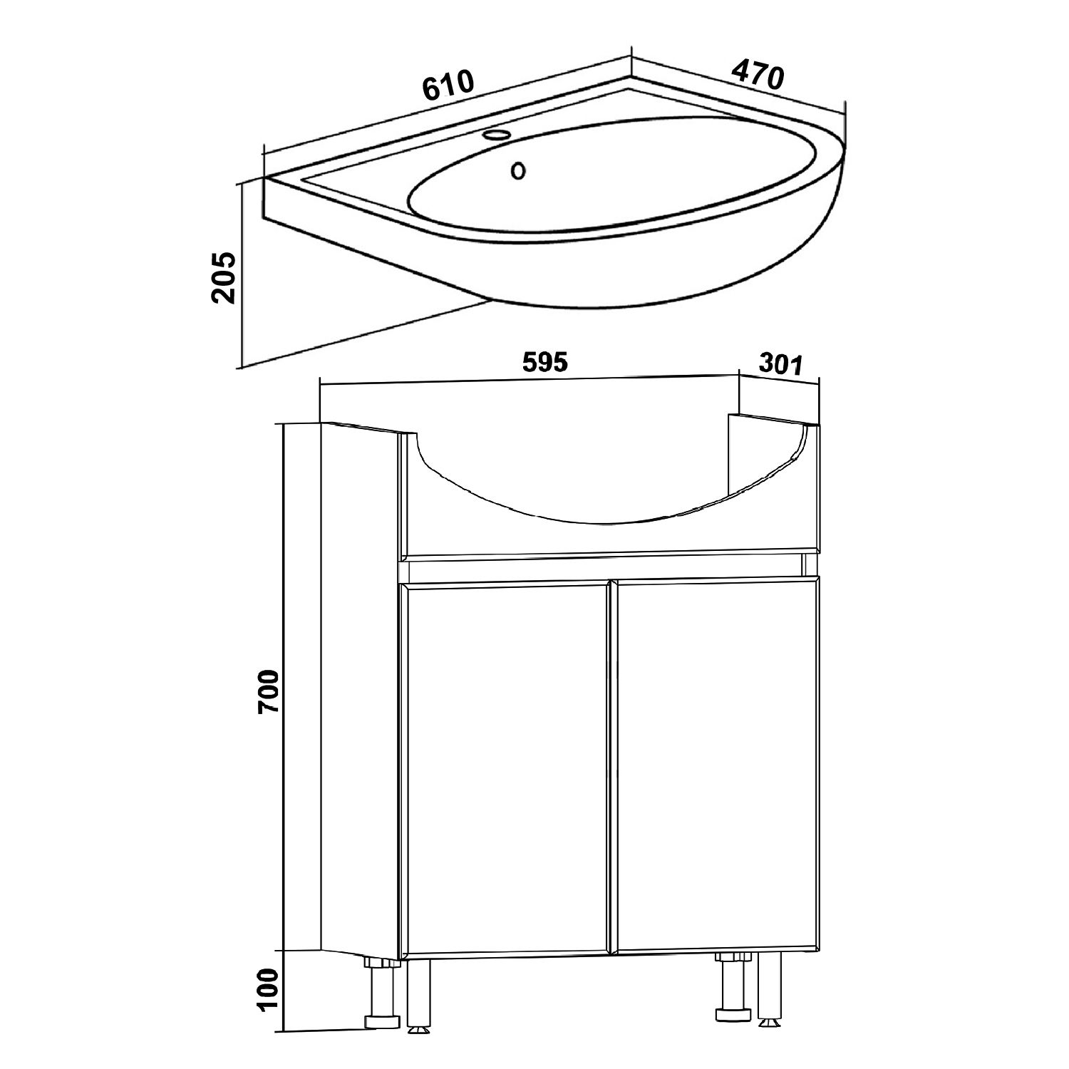 Тумба с раковиной RUNO ЛАДА - модное и оригинальное решение для бюджетного оснащения ванной комнаты. Тумба под раковину ЛАДА (напольная) выполнена в двух цветах - классическом белом и в стильном цвете - графит/серый дуб . Тумба в ванную имеет две распашные дверцы и одну внутреннюю полку. В комплекте идут петли со встроенным доводчиком, 2 хромированные и 2 пластиковые ножки. Тумба для ванной комплектуется керамической раковиной "Уют" (610*470 мм). Раковина имеет глубину 21 см. Раковина имеет глубину 18 см. Мебель для ванной RUNO - красота и практичность в мелочах!