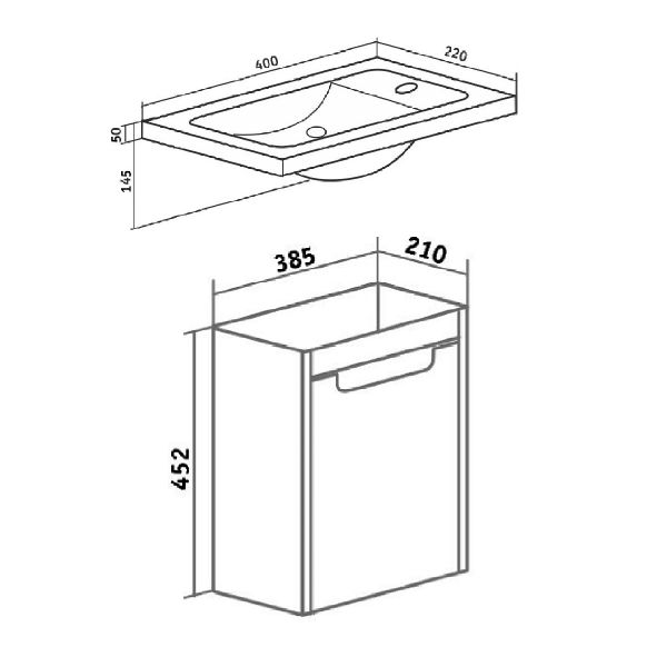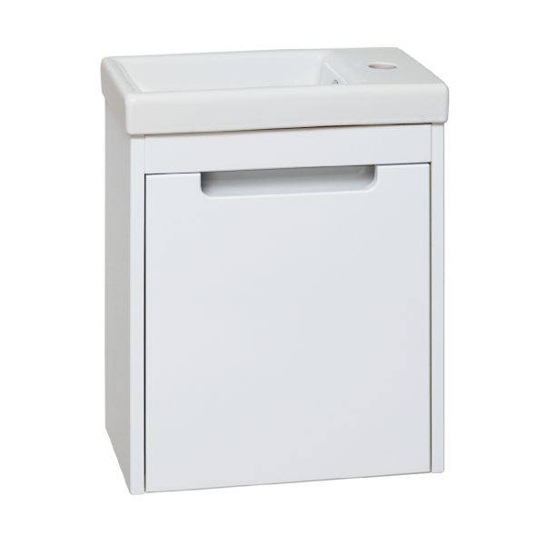 Тумба под умывальник подвесная с одним распашным фасадом, открывающимся слева направо (петли справа). Петли со встроенным доводчиком, навесы - 2шт.