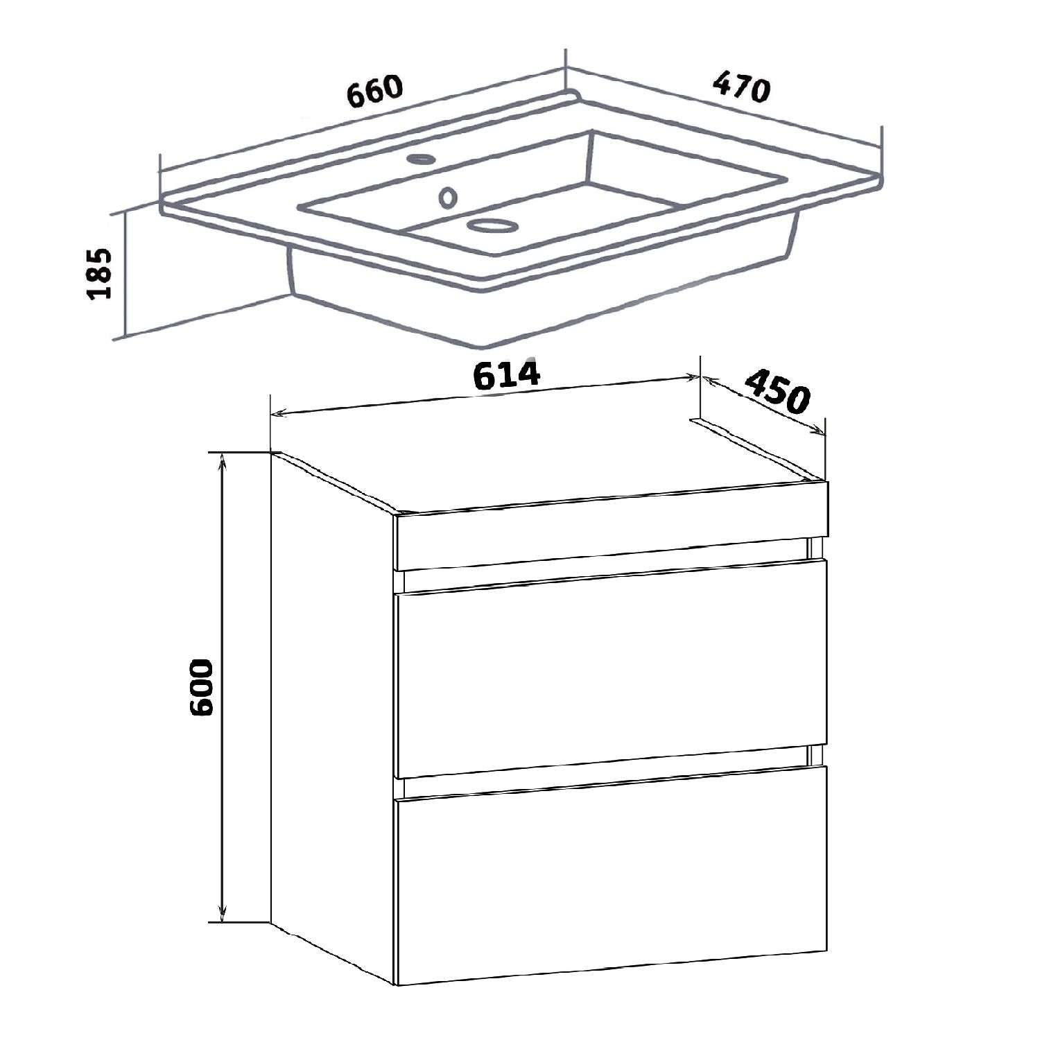 Тумба под раковину Runo подвесная белая (под умывальник Оскар 65 Оскар 65) Манхэттен 65 (00-00001046)