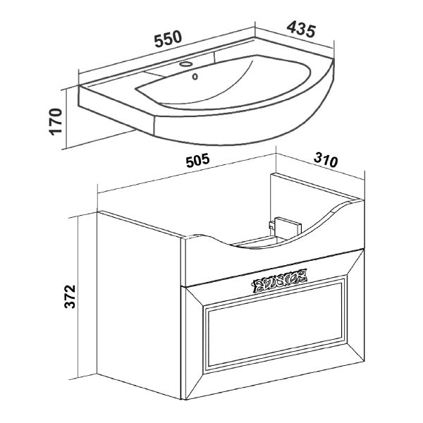 Тумба под умывальник подвесная с одним выдвижным ящиком. Ящик - на шариковых направляющих скрытого монтажа с доводчиком. Ручка - 1шт , навесы -2шт.