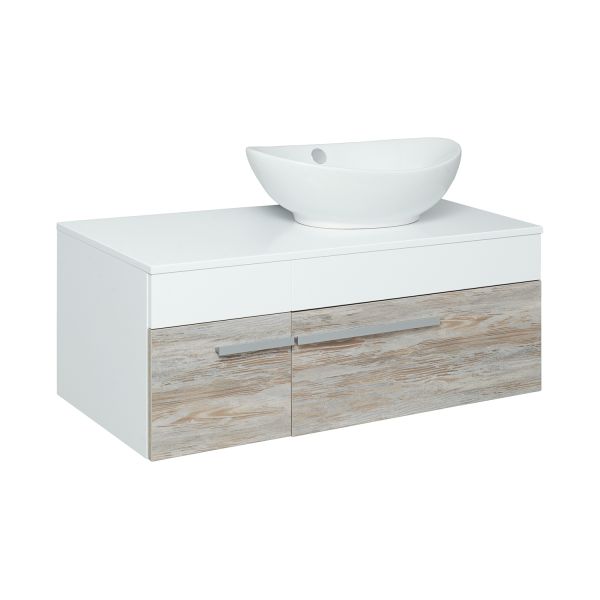 Тумба подвесная под умывальник с выдвижным ящиком. Благодаря универсальному отверстию на столешнице тумба может комплектоваться различными вариантами накладных раковин: модель «Caspia» 60 TM Cersanit с вместительной чашей овальной или квадратной формы или раковина «Гамма» 56 ТМ Kirovit c глубокой чашей и высокими бортиками, которые отражают современные тренды в дизайне. Ящик на шариковых направляющих, оснащенных системой плавного закрывания.