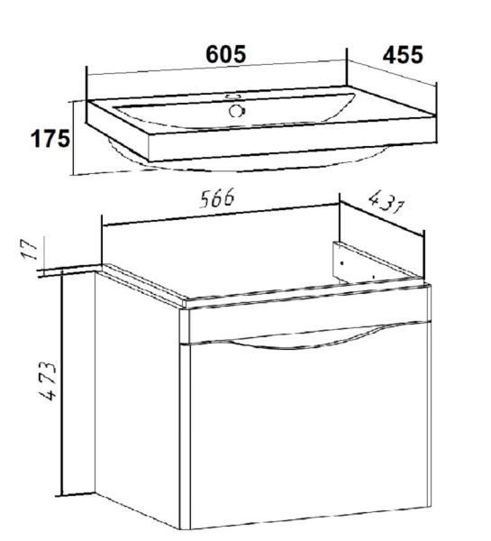 Тумба с раковиной для ванной комнаты RUNO АФИНА - безупречное сочетание модных тенденций с классическим оформлением ванной комнаты. Тумба под раковину в ванную АФИНА имеет два выдвижных ящика на шариковых направляющих, оснащенных системой плавного закрывания. Цвет фасада стильный - цемент, идеально впишется в интерьер ванной комнаты. В комплекте идут 2 хромированные и 2 пластиковые ножки. Тумба для ванной комнаты комплектуется накладной керамической раковиной "Moduo" (605х460 мм). Раковина имеет глубину 17,5 см. Мебель для ванной RUNO - красота и практичность в мелочах!