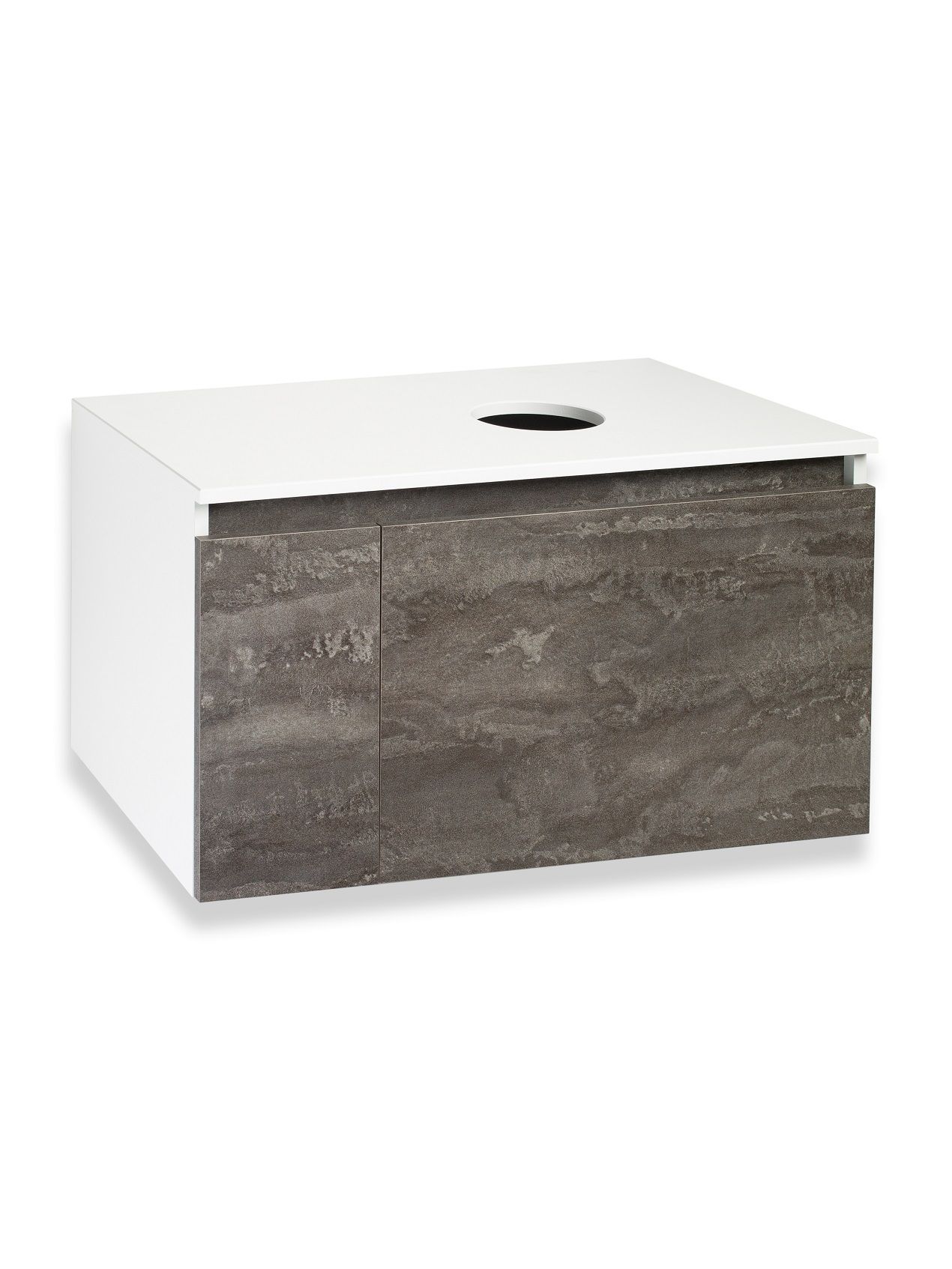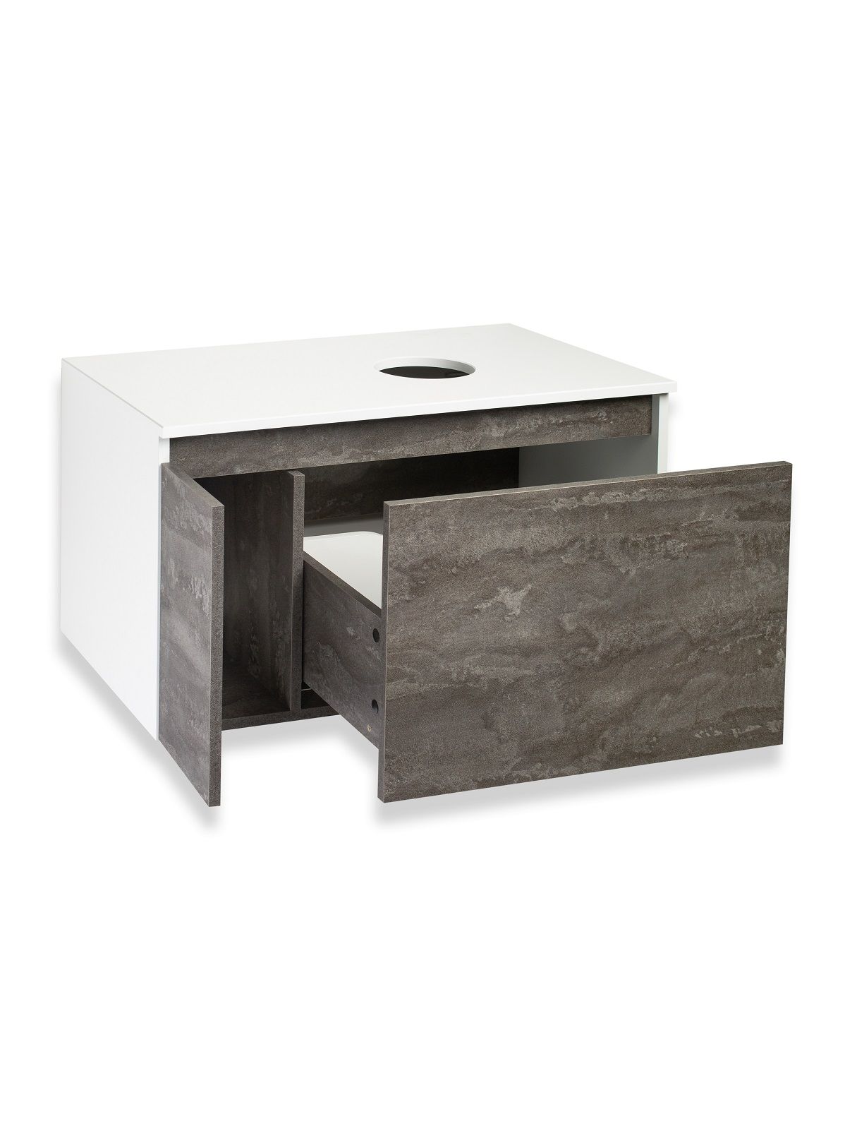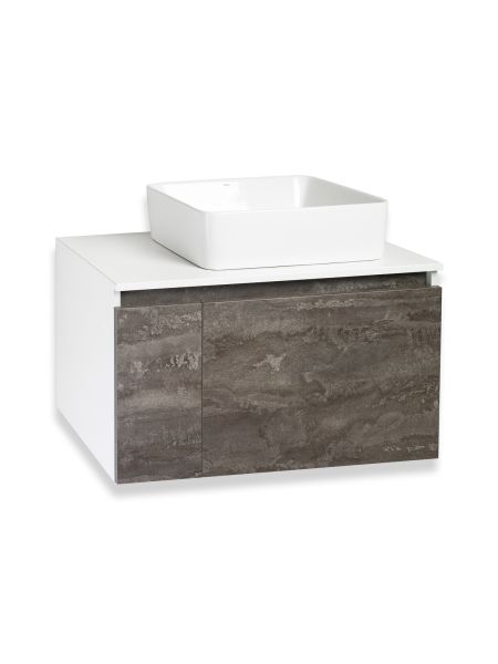 Тумба под раковину в ванную RUNO БАРИ (подвесная) - безупречное сочетание модных тенденций с классическим оформлением ванной комнаты. Тумба под раковину БАРИ оснащена выдвижным ящиком на шариковых направляющих, с системой плавного закрывания с правой стороны и распашной дверцей с левой стороны, дверца укомплектована двумя петлями верхняя с доводчиком, нижняя без доводчика. Цвет корпуса классический - белый, при этом цвет фасада в модном цвете – железный камень, идеально впишутся в любой интерьер ванной комнаты. К тумбе для ванной подойдут умывальники на столешницу: «OVALE 50» (50х36см) - идеальное решение для стильного интерьера ванной, создан для минималистичных интерьеров и подойдёт для санузлов в стиле лофт, минимализм и хай-тек. Строгая овальная геометрически правильная форма раковины, усиливает идею лаконичности в дизайне, устанавливается на столешницу, накладным методом. «PALLA D41» (диаметр 41см) - идеальное решение для стильного интерьера ванной, создан для минималистичных интерьеров и подойдёт для санузлов в стиле лофт, минимализм и хай-тек. Строгая круглая геометрически правильная форма раковины, усиливает идею лаконичности в дизайне, устанавливается на столешницу, накладным методом. «TRE 48» (48х37см) - идеальное решение для стильного интерьера ванной, создан для минималистичных интерьеров и подойдёт для санузлов в стиле лофт, минимализм и Хай-Тек. Строгая прямоугольная форма с округлыми углами усиливает идею лаконичности в дизайне, устанавливается на столешницу, накладным методом. «TERZO 60» (59х39см) - идеальное решение для стильного интерьера ванной, создан для минималистичных интерьеров и подойдёт для санузлов в стиле лофт, минимализм и хай-тек. Асимметричная раковина, которую можно установить любой стороной, дизайнерское решение для нестандартных интерьеров, усиливает идею лаконичности в дизайне, устанавливается на столешницу, накладным методом.