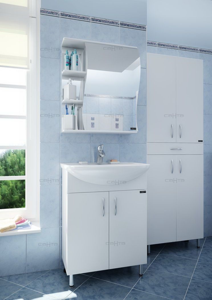 Тумба для комплекта СанТа подойдет как для просторной ванной комнаты, так и для небольшого помещения. Напольный способ установки производится непосредственно на пол, при этом конструкция максимально устойчива при серьезных физических нагрузках.В производстве используют только качественные влагостойкие материалы (ВЛДСП), в составе которых полностью отсутствуют опасные вещества. Серия Венера отличается превосходным дизайном с соблюдением всех ключевых элементов современного стиля. Основным цветом, в котором выполнена тумба под раковину СанТа является белый, гармонирующий с большинством интерьерных решений. Тумба под раковину предусматривает удобную и вместительную систему хранения, состоящую из полок и дверей.Страной бренда СанТа является Россия, все товары производятся с выполнением соответствующих стандартов качества, что позволяет быть полностью уверенными в долговечности и надежности. Тумба для комплекта СанТа поможет сделать уютным любой интерьер и создать идеальную ванную комнату.