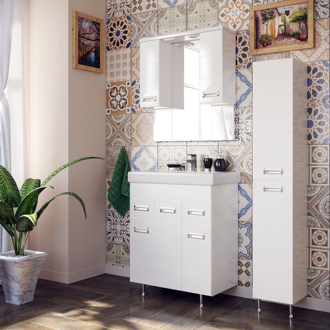 Тумба для комплекта Stella Polar великолепно впишется в дизайн любой ванной комнаты, будь то компактная ванная в многоэтажном доме или большой санузел в загородном коттедже. Напольный способ установки производится непосредственно на пол, при этом конструкция максимально устойчива при серьезных физических нагрузках.Компания Stella Polar использует при производстве высококачественные водоотталкивающие материалы, соответствующие всем необходимым требованиям безопасности. Серия отличается превосходным дизайном с соблюдением всех ключевых элементов. Основным цветом, в котором выполнена тумба под раковину Stella Polar является белый, отлично подходящий большинству дизайнерских решений. Тумба под раковину предусматривает удобную и вместительную систему хранения.Страной бренда Stella Polar является Россия, все товары производятся с выполнением соответствующих стандартов качества, что позволяет быть полностью уверенными в долговечности и надежности.