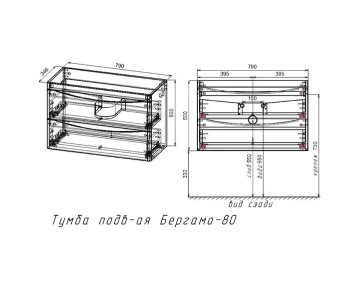 Тумба под раковину Style Line Бергамо СС-00002322 мини 80 Люкс антискрейтч Plus 80 см