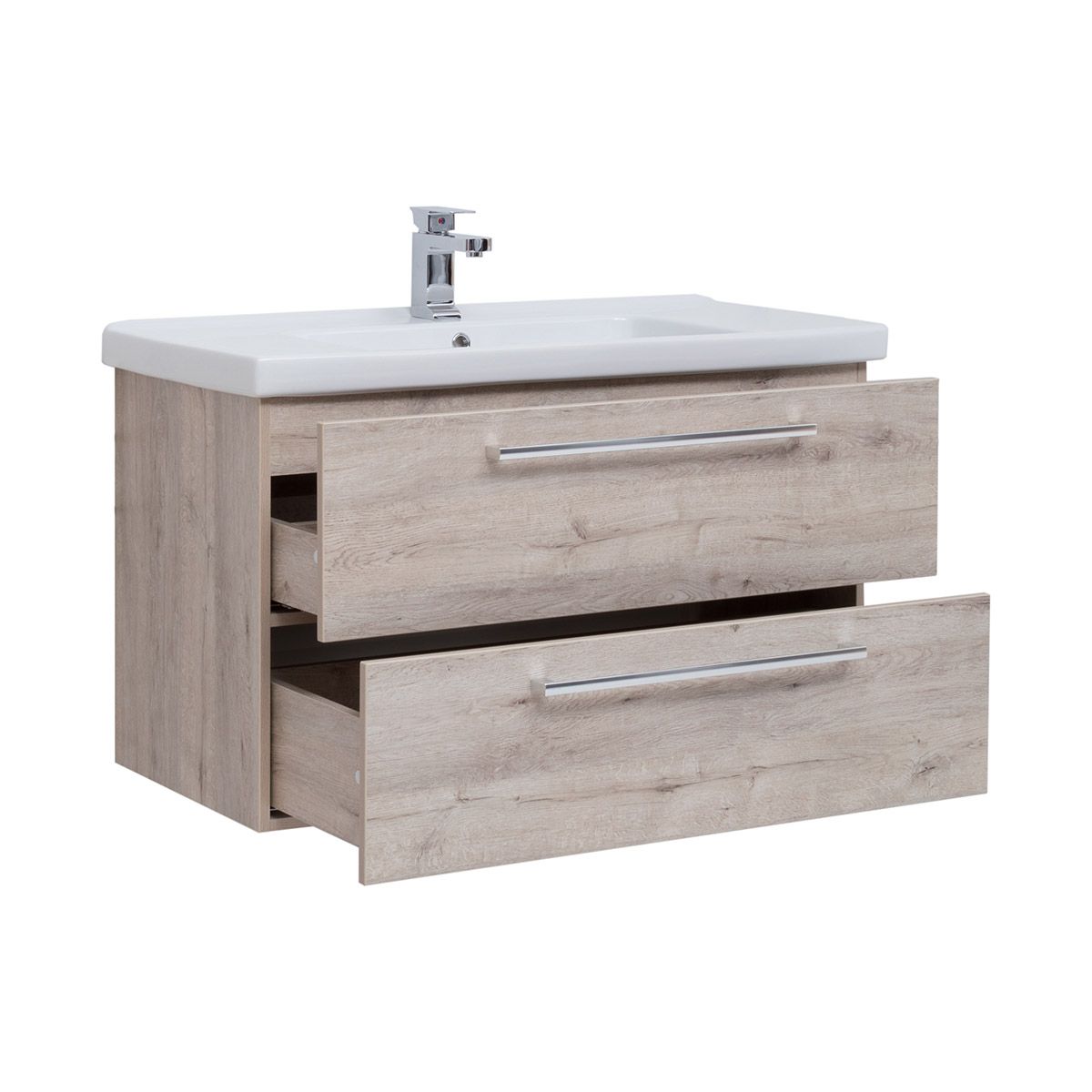 Подвесная современная коллекция в 3-х размерах с 2-мя выдвижными ящиками с доводчиками Hettich Возможна комплектация зеркалом, зеркальным шкафом, пеналом, полупеналом.