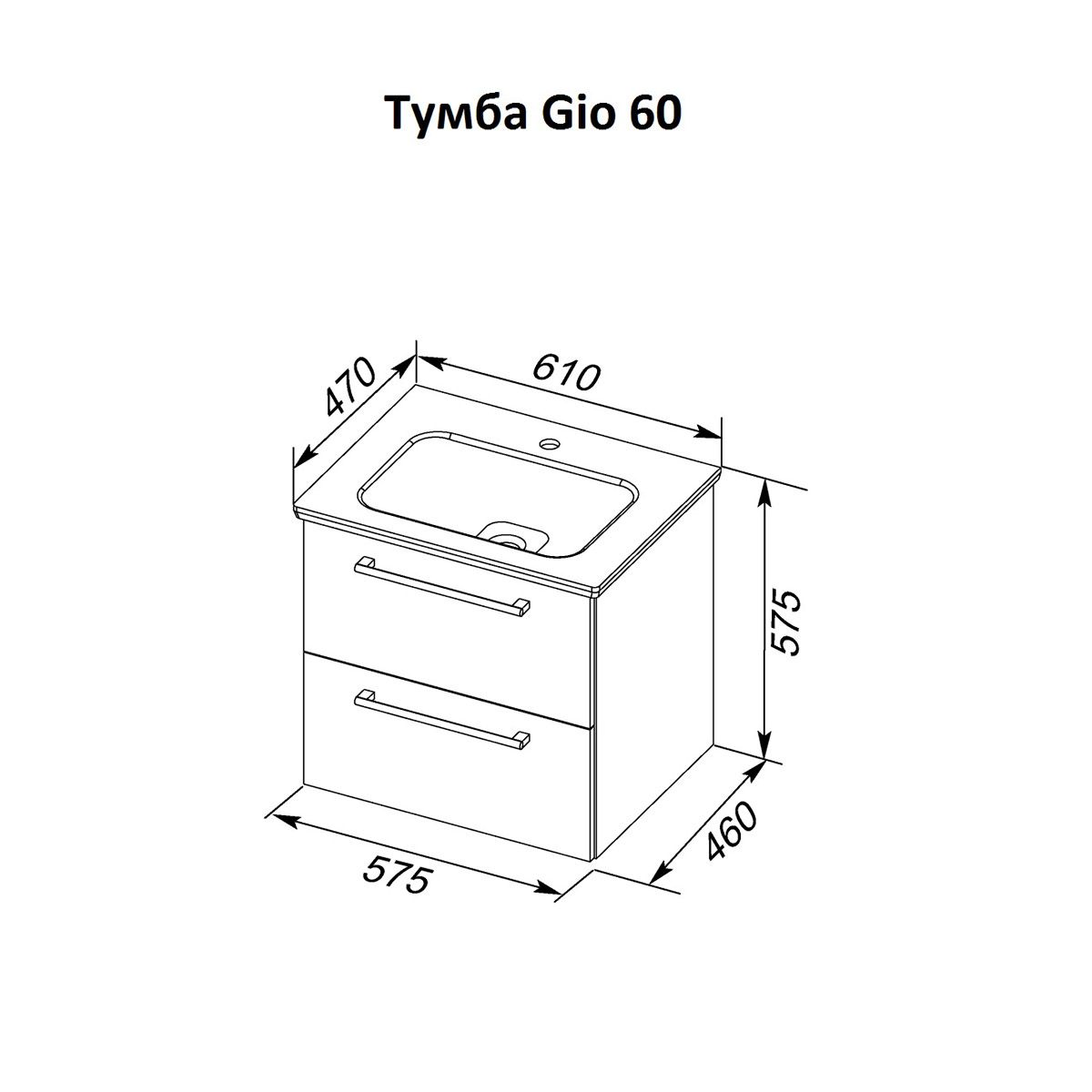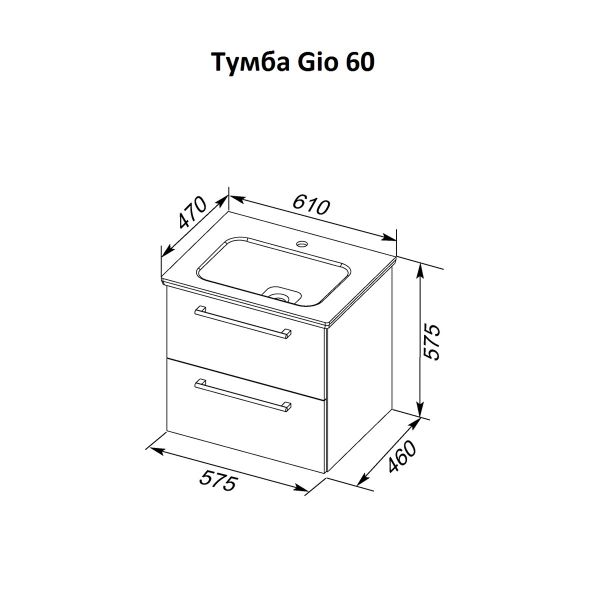 Тумба подвесная Dreja.Rus GIO 60 под умывальник Эйфория-60, белый глянец