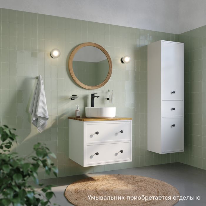 Компактная подвесная тумба Torr классического молочно-белого цвета со столешницей из клееного натурального дуба. Сочетает в себе узнаваемый стиль и практичность популярного скандинавского дизайна. Ее четкие формы, теплый цвет дерева, фасады с декоративной филенкой, круглые ручки смотрятся гармонично и впишутся в любой современный интерьер. Подойдет любой накладной умывальник, покупается отдельно.