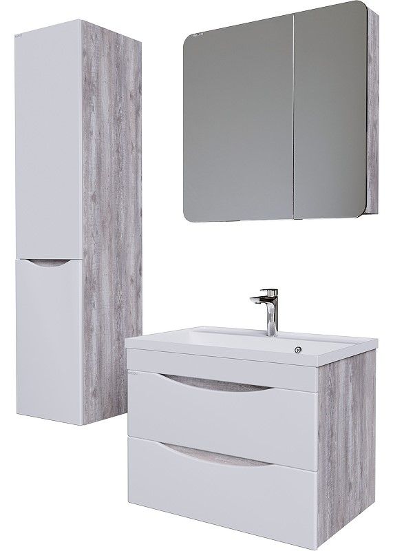 Тумба подвесная под раковину Grossman Талис 108014 80см бетон пайн/белый глянец купить