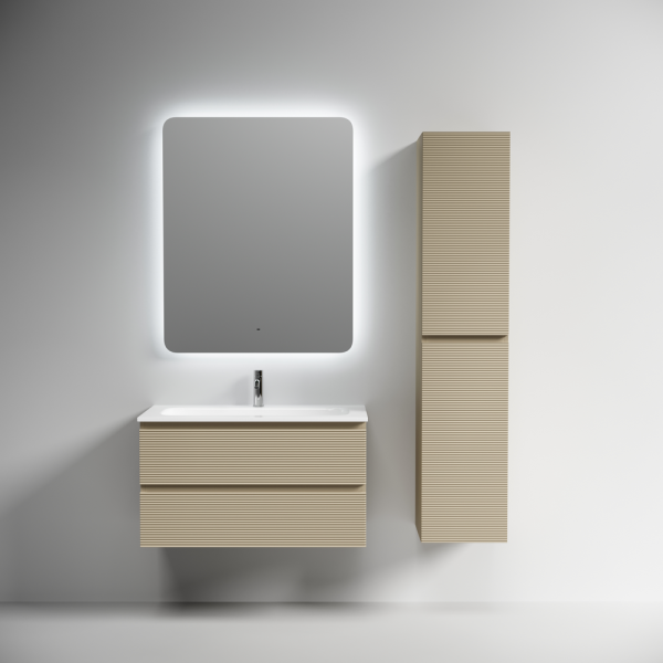 На изображении тумба Folk представлена с зеркалом RAY, смесителем из коллекции ETNA и раковинами Grace CN7019